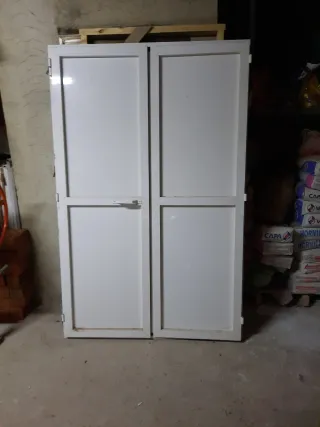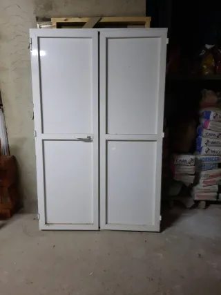 Puerta de aluminio de doble hoja en color blanco. Ideal para exteriores o interiores. - Material: Aluminio. - Color: Blanco. - Diseño: Doble puerta. Medidas203 x 130