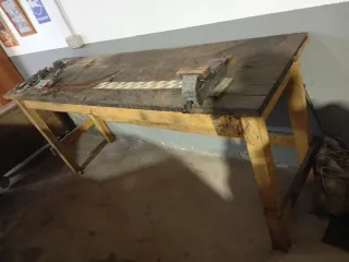 Banco de trabajo de madera con una estructura resistente y superficie amplia. 60x210 - Superficie de madera desgastada. - Patas de madera robustas. -NO Incluye el tornillo de banco.