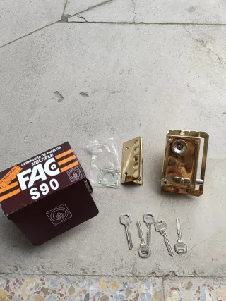 Se vende cerradura FAC S90, ideal para múltiples usos. Incluye todo lo que se ve en las fotos. - Cerradura FAC S90. - Juego de 5 llaves. - Placa de montaje. - Caja original.