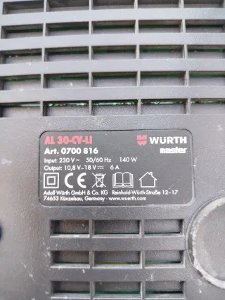 Cargador de la marca Wurth. - Indicadores LED de estado. - Diseño robusto.