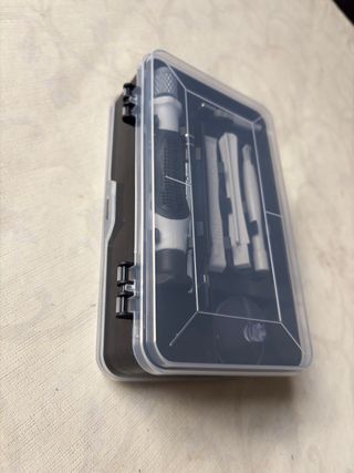 Práctico juego de destornilladores de precisión para reparaciones delicadas. Incluye un mango ergonómico y varias puntas intercambiables. - Mango con agarre antideslizante. - Variedad de puntas para diferentes tornillos. - Estuche organizador transparente.