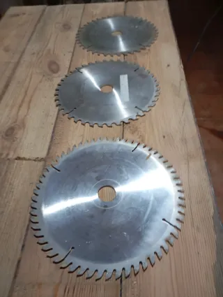 Se venden conjunto 6 discos de corte para madera en ingletadora / escuadradora/mesa corte etc Diámetro exterior 210 Para eje 30mm Precio por unidad 15€ Se puede vender en lotes de 3 y 6 unidades Porte no incluido