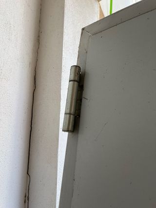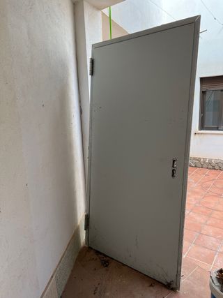 Puerta de seguridad antiincendios. - Material metálico. - Bisagras de muelle. Puerta robusta De 105 cm de ancho aprox. Con manetas y tornillos Se puede ver sin compromiso