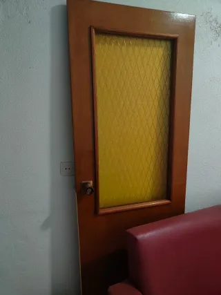Pack de 6 puertas Puerta de madera con un panel de cristal texturizado en color amarillo. - Marco de madera. - Cristal con patrón de rombos. Puertas de paso madera lisas. 5 unidades