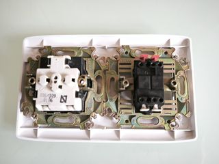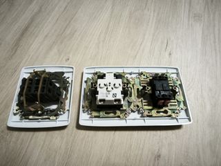 Conjunto de mecanismos para instalaciones eléctricas, compuesto por un enchufe y dos interruptores. OFERTA TE LO REBAJO A 5 ASI TIENES PARA EL PORTE. - Un enchufe. - Dos interruptores. - LOS SOPORTES SON METALICOS. - Marca EUNEA AHORA SE LLAMA SCHNEIDER