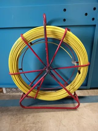 Se vende guia pasacables de amarillo con soporte de 50 metros. - Color del cable: amarillo. - Color del soporte: rojo y azul.