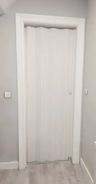 Puerta corredera de PVC con sistema de fuelle. - Material: PVC. - Tipo: Corredera fuelle. - Medidas 2.02 cm x 0.70cm