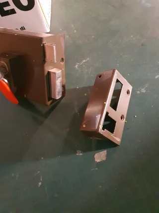 Cerradura de seguridad para puertas. - Color marrón. - Incluye dos llaves con un accesorio naranja.