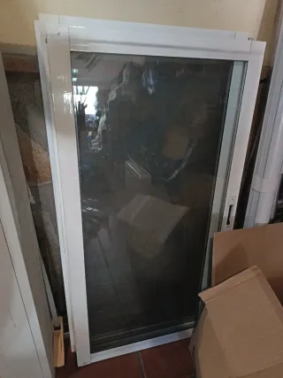 Ventana corredera de aluminio en color blanco. Ideal para cuartos de baño o pequeñas estancias. Incluye marco y las dos hojas. No lleva ningún tipo de persiana. - Marco de aluminio resistente. - Acabado en blanco. - Diseño moderno y funcional. - Cristal Climalit doble opaco/traslucido Dispongo de 2 ventanas: Una ventana 60€ Las dos por 100€ Medidas 125 de alto y 95 de ancho Para hueco de 120x90 aprox Hoja de 45