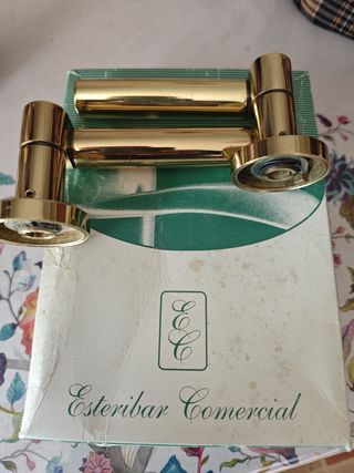 Juego de 7 manivelas para puerta con acabado dorado brillante. Incluye todo lo necesario para su instalación. - Diseño elegante y moderno. - Material de alta calidad. - Marca: Esteribar Comercial.