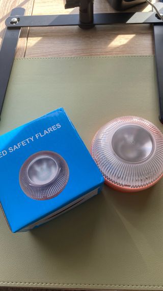 Luz de emergencia LED NO GROLOCALIZABLE. Se disponen de 3 unidades. 5€/unidad - Diseño circular con base naranja. - Cubierta transparente acanalada. - Base inmantada - Tipo baliza de emergencia BASICA