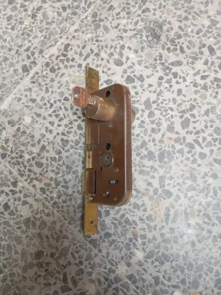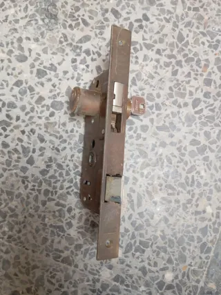 Cerradura de metal antigua, robusta y de gran tamaño. Ideal para proyectos de restauración o para quienes buscan un elemento de seguridad con carácter. - Mecanismo de cierre visible. - Incluye bombín y llave.