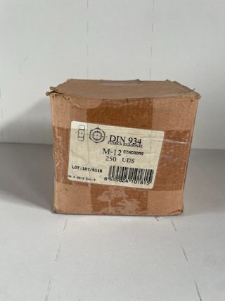 -Tuerca hexagonal (DIN 934). -Medida: M-12 (métrica 12 mm). -Acabado: Cincadas lo que proporciona una capa protectora contra la corrosión. Cantidad: 250 unidades por caja.