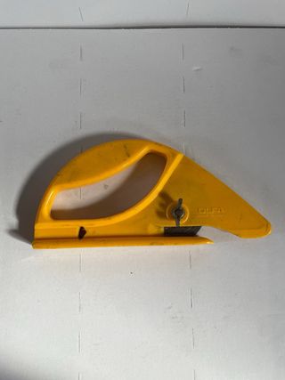 Cuter rotatorio de fabricación japonesa marca Olfa está diseñado para realizar cortes precisos en materiales gruesos. Aplicaciones sugeridas: Es ideal para cortar moquetas, alfombras, planchas de goma, linóleo, tela, vinilo y césped artificial. Cuchilla: Utiliza una cuchilla circular de 45 mm de diámetro (modelo RB45) que permite realizar cortes continuos y seguros sin dañar la superficie de apoyo. Diseño: Cuenta con un mango de plástico ABS resistente y es apto tanto para usuarios diestros como zurdos.