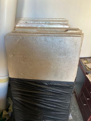 14 piezas. 1m x 0,8m aprox. Usado como base de una piscina hinchable. Superficie unos 16m2