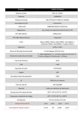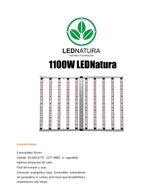 Luz LED de alta potencia para cultivo interior. - Modelo: 1100W LEDNatura. - Controlador Driver. - Voltaje: AC100-277V / 277-480V o regulable. - Óptima disipación de calor. - Fácil de instalar y usar. - Bajo consumo energético. - Encendido instantáneo sin parpadeos ni ruidos. - Diseñada para plantaciones fotosensibles en espacios cerrados.