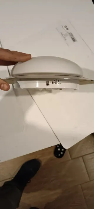 Plafón de techo con protección IP44, apto para zonas húmedas como el baño o el aseo. - Indicación de montaje 'UP' visible. - Marcado IP44.