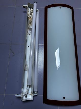 Lámpara fluorescente rectangular con marco oscuro. - Diseño alargado y moderno. - Difusor blanco translúcido.