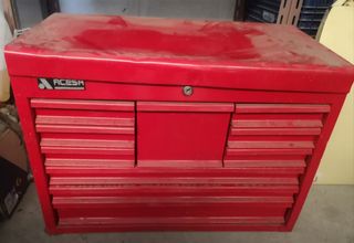 caja de herramientas antigua acesa fabricada en España. nesesita una restauración tiene algunos golpes de los años. pero es completamente funcional. pasa más de 30kg preferentemente gente cerca de Sevilla.