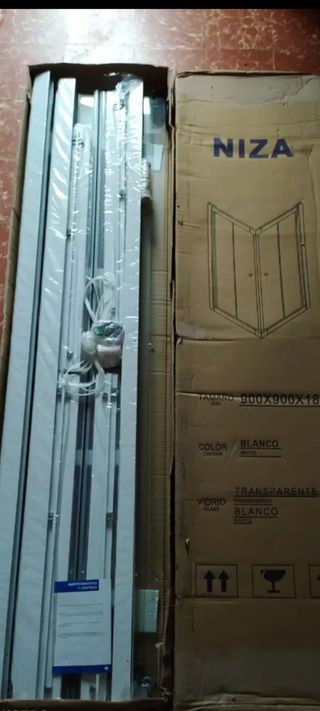 Mamparas de baño nueva sin estrenar tengo de 900x900 y de 800x800 son de aluminio blanco total mente nuevas en las cajas y precintadas se pueden ver sim compromiso las vendo en 50€ und.
