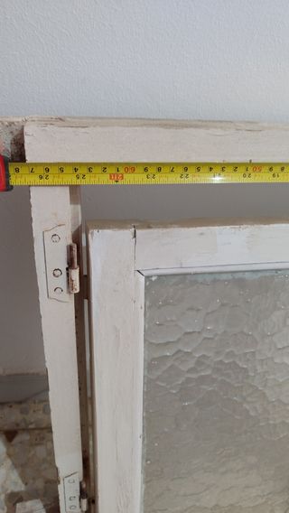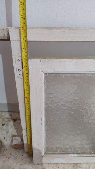 Ventana de madera con premarco, en buen estado, solo necesitaría una mano de pintura. 67x50cm