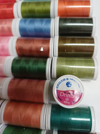 Lote de 20 bobinas de hilo de la marca Drima. - Material: 100% poliestireno. - Ideal para costura y manualidades.