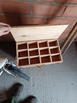 Organizador de madera con compartimentos. - Ideal para tornillos, herramientas pequeñas o manualidades. - Fabricado en madera.