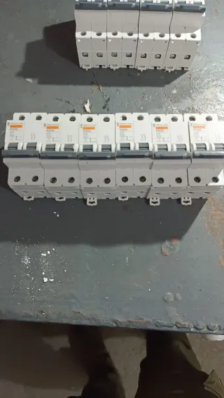 Lote de interruptores termomagnéticos diferenciales y trifásicos. - Interruptores de alta calidad. - Diseñados para protección eléctrica. C16 6 unidades C10 4 unidades diferenciales 4 unidadesY trifasicos varios