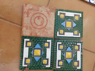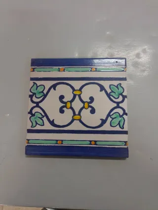 Conjunto de tres azulejos de cerámica con diseños pintados a mano. Precio por unidad - Cada azulejo mide 10x10 cm. - Diseños variados con motivos florales y naturales. - Ideal para decoración o proyectos de mosaico.