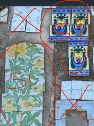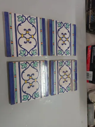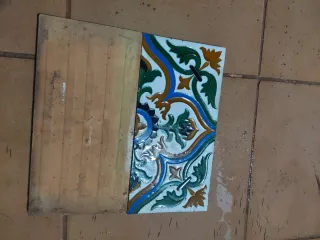 Conjunto de azulejos con un diseño tradicional valenciano. Tengo los que se aprecian en la foto. El cuadrado es de 20x20, el rectagular de 20x7,5