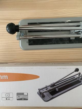 Herramienta para cortar azulejos y baldosas de cerámica. - Base metálica resistente. - Guías de corte cromadas. - Mango ergonómico para un mejor agarre.