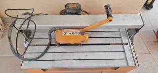 Máquina para cortar azulejos, ideal para trabajos de construcción y reformas. - Estructura metálica robusta. - Superficie de corte amplia. - Diseño compacto para fácil transporte.