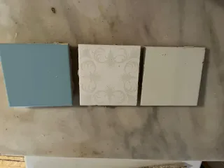 Tres modelos de azulejos de los años 70: 1- Dos dibujos ovalados. 18 azulejos, 2 con restos de cemento y 5 cortados. Dos azulejos de otro modelo (foto 3) (8€) 2- Flores naranja/verde. 16 azulejos en buen estado (9€) 3- Dibujo azul. 11 azulejos, 2 manchados de yeso, 1 roto por arriba y 1 tiene un golpe (8€) Cada grupo tiene su precio. Todos juntos por 20€