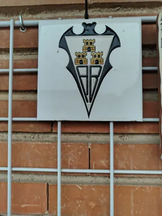 Azulejo decorativo del Hércules de Alicante. - Diseño con escudo del club, trofeo y estadio. - Texto Aquí vive un hincha del... Hércules.