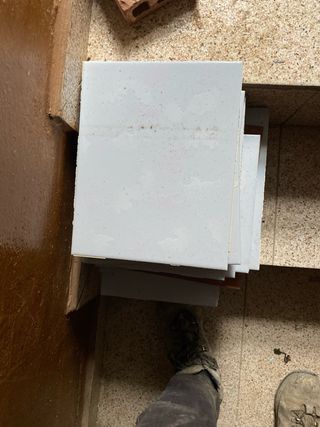 Lote de azulejos de cerámica, ideales para proyectos de construcción o renovación. - Color terracota. - Acabado mate. - Formato cuadrado.