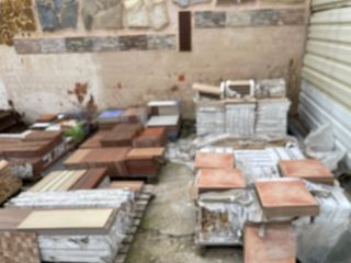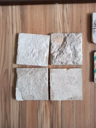 Mas o menos 8 m2 de azulejos con textura de piedra natural. No queda caja de carton. Solo para recojer. Pesan mas o menos 200 kg