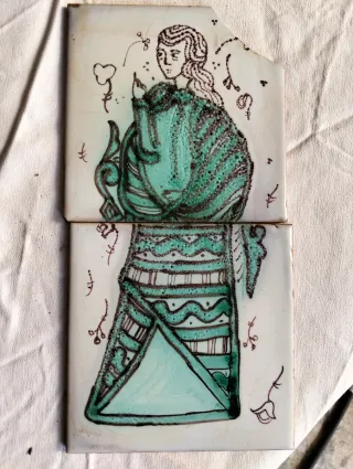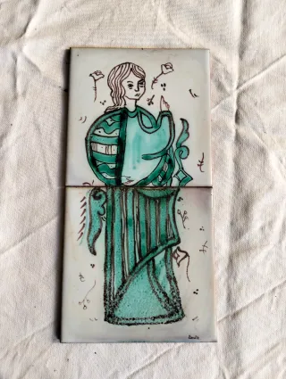 Conjunto de dos azulejos de cerámica pintados a mano, con el sello de Cerámica Paterna. - Diseño artesanal único. - 15x30 - regalo el conjunto que tiene canto roto