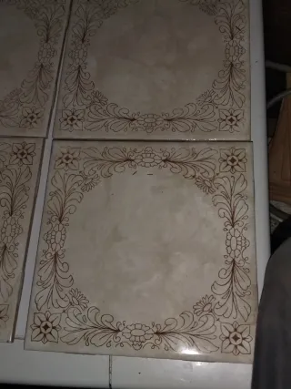 Conjunto de azulejos vintage con un bonito diseño floral. - Diseño floral en tonos crema y naranja. - Ideal para proyectos de decoración o restauración.