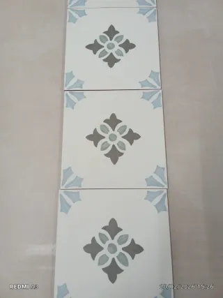 Conjunto de azulejos hidráulicos con un diseño vintage en tonos azules y verdes. Perfectos para dar un toque de estilo a cualquier espacio.siglo XIX - Diseño floral y geométrico. - Base de cerámica. - Acabado mate.