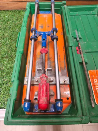 Herramienta para cortar azulejos, con su maletín de transporte. - Guías metálicas. - Mango ergonómico. - Mecanismo de corte.