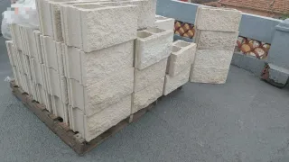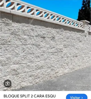Bloques de hormigón con acabado split en color blanco se vende sueltos o palets 1,6€/ud Palets 75 120€ - Ideal para construcción y decoración. - Textura rugosa característica del acabado split.