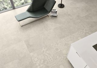 Azulejo de diseño moderno con veteado en blanco, ideal para suelos o paredes. - Color gris con vetas blancas. - Acabado mate.