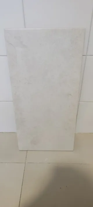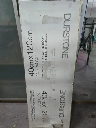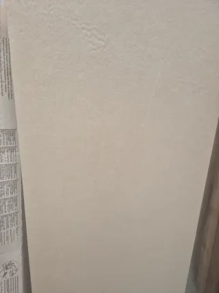 Azulejo de la marca Durstone, ideal para baños. Presenta un diseño texturizado que imita la piedra. - Color: Blanco roto / Crema - Acabado: Mate - Material: Gres porcelánico - Formato: Rectangular Tamaño 40x120 tengo 6 piezas, dos paquetes completos sin usar. Nos equivocamos en las medidas y van a pedido. PVP 100e/paquete. Por el precio de uno te llevas 2.