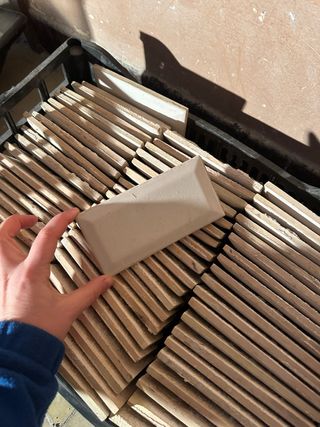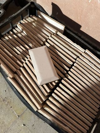 Conjunto de ladrillos antiguos de cerámica, perfectos para proyectos de restauración o decoración. - Material: Cerámica - Color: Tono tierra - Diseño: Rectangular con bordes biselados