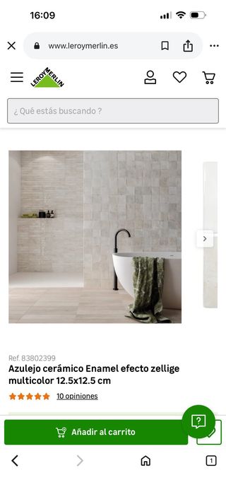 Azulejo cerámico de Leroy Merlin con efecto zellige y acabado multicolor. Ideal para baños y cocinas. - Medidas: 12.5x12.5 cm. - Referencia: 83802399.