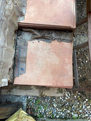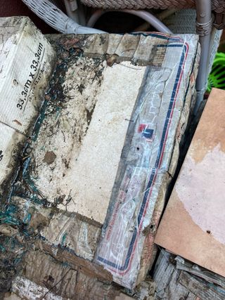 Baldosas rosas, restos de obra.