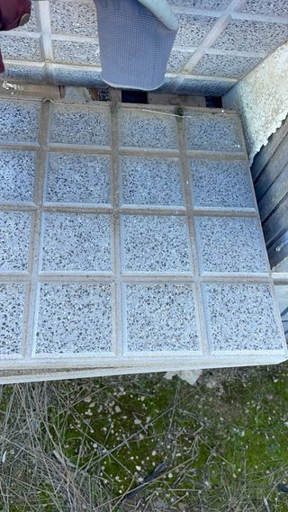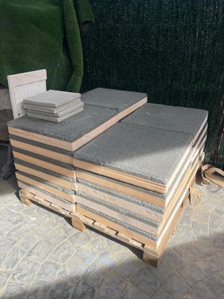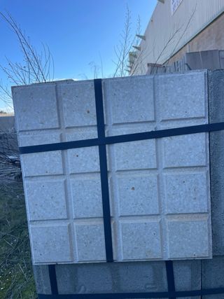 Lote de losas Texlosa, ideales para exteriores. Se venden en palet. - Material: Gres. - Color: Gris. - Textura: Antideslizante. Lote 22 losas TEXLOSA R aislantes 60x60 cm – ¡Cubre 8 m²! Descripción: Vendo 22 losas TEXLOSA R ideales para aislamiento y acabado en cubiertas planas. Características: ✔ Medidas: 60x60 cm ✔ Aislamiento: 60 mm poliestireno extruido (célula cerrada) ✔ Capa superior: mortero 35 mm, acabado rústico en blanco/gris ✔ Superficie total que cubren: aprox. 8 m² ✔ Estado: nuevas, sin usar Aplicaciones recomendadas: • Cubiertas planas visitables • Rehabilitación de cubiertas y obras d
