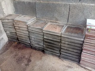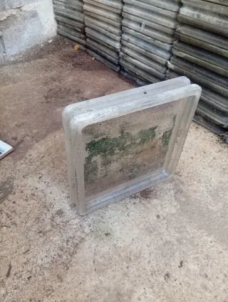 Lote de baldosas de vidrio tipo pavés, ideales para una pequeña de obra, una reparación o pequeños proyectos de construcción. - Material: Vidrio. - Tipo: Pavés. - 47 piezas. - Dimensiones 19x19x8 cm Necesitan una lavadita, están almacenadas en el exterior, pero resguardadas.
