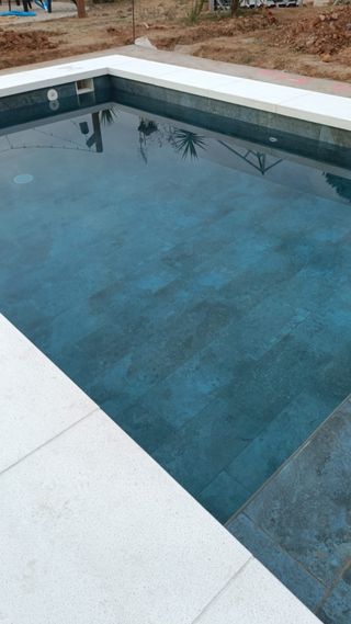 Azulejo porcelánico piscina efecto piedra turquesa