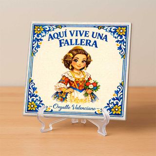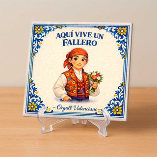 Azulejo cerámico decorativo inspirado en las tradiciones de las Fallas de Valencia, con los mensajes “Aquí vive una fallera” y “Aquí vive un fallero”. Un diseño lleno de color y tradición valenciana que rinde homenaje a quienes viven las Fallas. Perfecto para decorar tu hogar, casal fallero o cualquier rincón donde se respire espíritu fallero. Es apto para interior y exterior, ideal para entradas, patios o paredes decorativas. Además, es personalizable a tu gusto, pudiendo adaptar detalles si lo deseas. Disponible en 15x15 cm y 20x20 cm. Disponible en tuazulejo.es Una pieza perfecta para quienes sienten el orgullo valenciano.